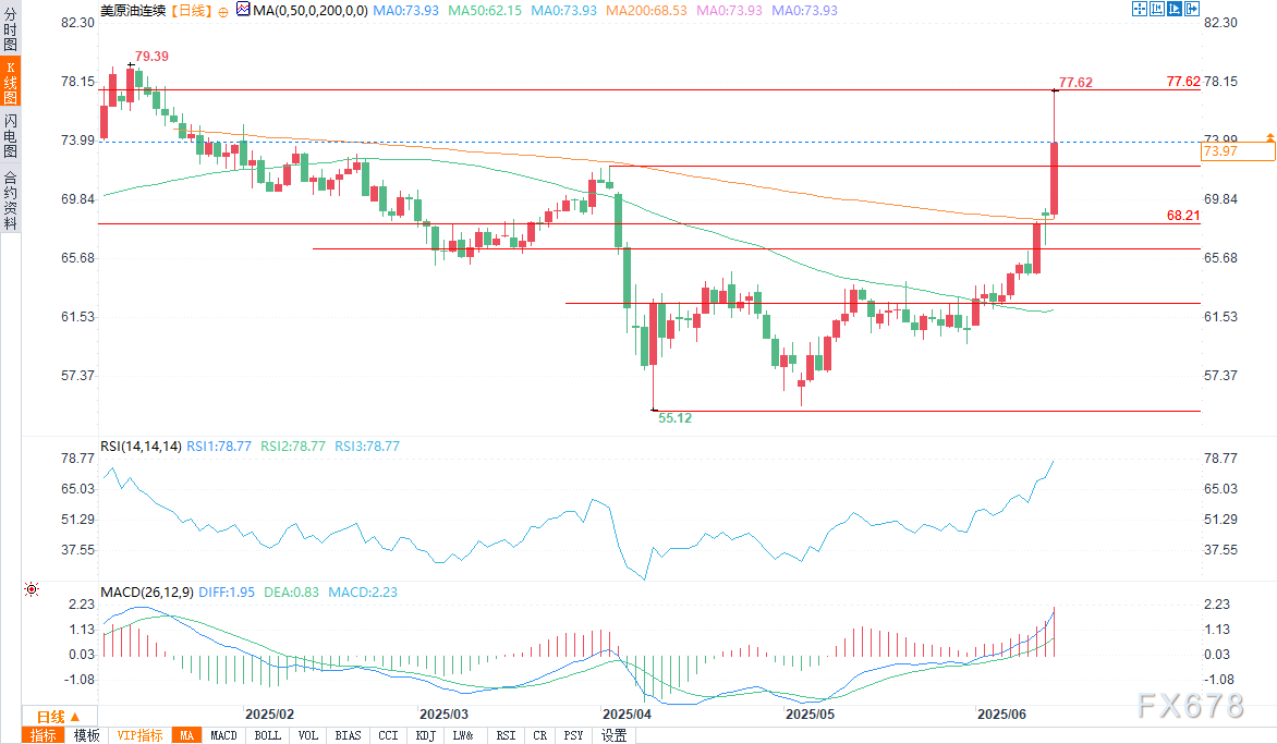 周五(6月13日)欧盘时段,在以色列对伊朗核设施及军事基地发动大规模袭击后,原油期货价格飙升近9%,创下2022年俄乌冲突以来最剧烈的价格反弹。油价在测试关键阻力位后回落,这让交易员们开始权衡:此次价格飙升是持续上涨的开端,还是短期反应?