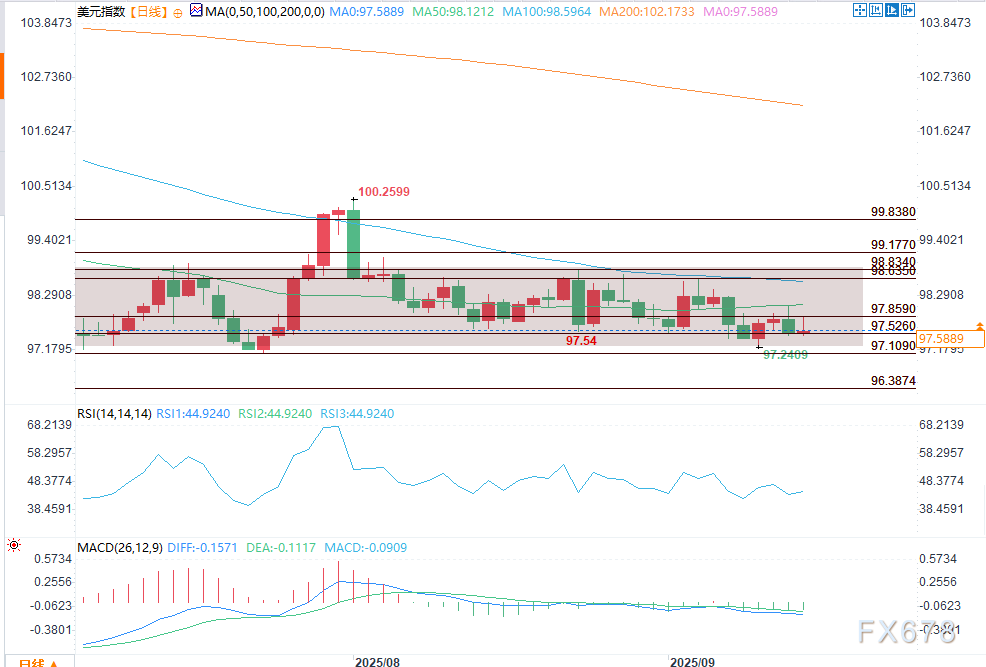 从技术面来看,该指数目前交易于50日平均线(98.12)下方,这进一步强化了其短期看跌倾向。 好坏参半的美国数据改变降息预期 近期经济数据释放出相互矛盾的信号。首次申领失业救济人数飙升至2021年10月以来的最高水平,创下四年内最大单周增幅,表明劳动力市场正在降温。与此同时,8月消费者价格指数(CPI)同比上涨2.9%——这是自1月以来的最大单月涨幅,核心CPI(剔除食品和能源价格的CPI)则升至3.1%。尽管这两项数据均高于美联储2%的目标,但总体符合市场预期。 更添不确定性的是,9月美国消费者信心大幅下滑。密歇根大学消费者信心指数初步值降至55.4,为5月以来最低水平,不仅低于58.1的预期值,也低于8月的58.2。这一降幅表明,进入第四季度后美国家庭信心正在减弱,加剧了市场对消费者支出持续性的担忧。 劳动力市场疲软、消费者信心下滑与通胀居高不下的叠加局面,使美联储的政策路径变得复杂。目前,联邦基金利率期货显示,市场几乎确定美联储将在9月17日的FOMC会议上降息25个基点,而对50个基点降息的预期已有所减弱。交易员越发预计,到年底美联储将以更为温和的节奏实施宽松政策,同时降低了对更大幅度降息的预期。 数据公布后美国国债收益率回升 随着市场重新评估通胀与劳动力市场的关系,美国国债收益率扭转了周四的下跌趋势。10年期国债收益率盘中上涨4.5个基点,至4.068%;2年期国债收益率盘中上涨1.62个基点,至3.562%;30年期国债收益率盘中升至4.69%。此次全面上涨表明,即便劳动力市场指标走弱,投资者仍在为通胀持续的情况调整持仓,这给肩负“双重使命”(稳定物价与实现充分就业)的政策制定者带来了压力。 跨境货币波动反映各国央行政策分歧 欧洲央行(ECB)将利率维持在2%不变,并释放出更为中性的政策立场后,欧元盘中小幅下跌至1.1736美元,市场降低了本轮周期内欧洲央行再次降息的概率。在美国与日本发表反对外汇市场无序波动的声明后,美元对日元汇率上涨0.27%,至147.599日元。此外,英国7月国内生产总值(GDP)数据显示经济停滞,受此消息影响,英镑对美元汇率下跌0.03%,至1.3566美元,进一步削弱了短期市场情绪。 市场展望:FOMC会议前,美元指数呈谨慎倾向